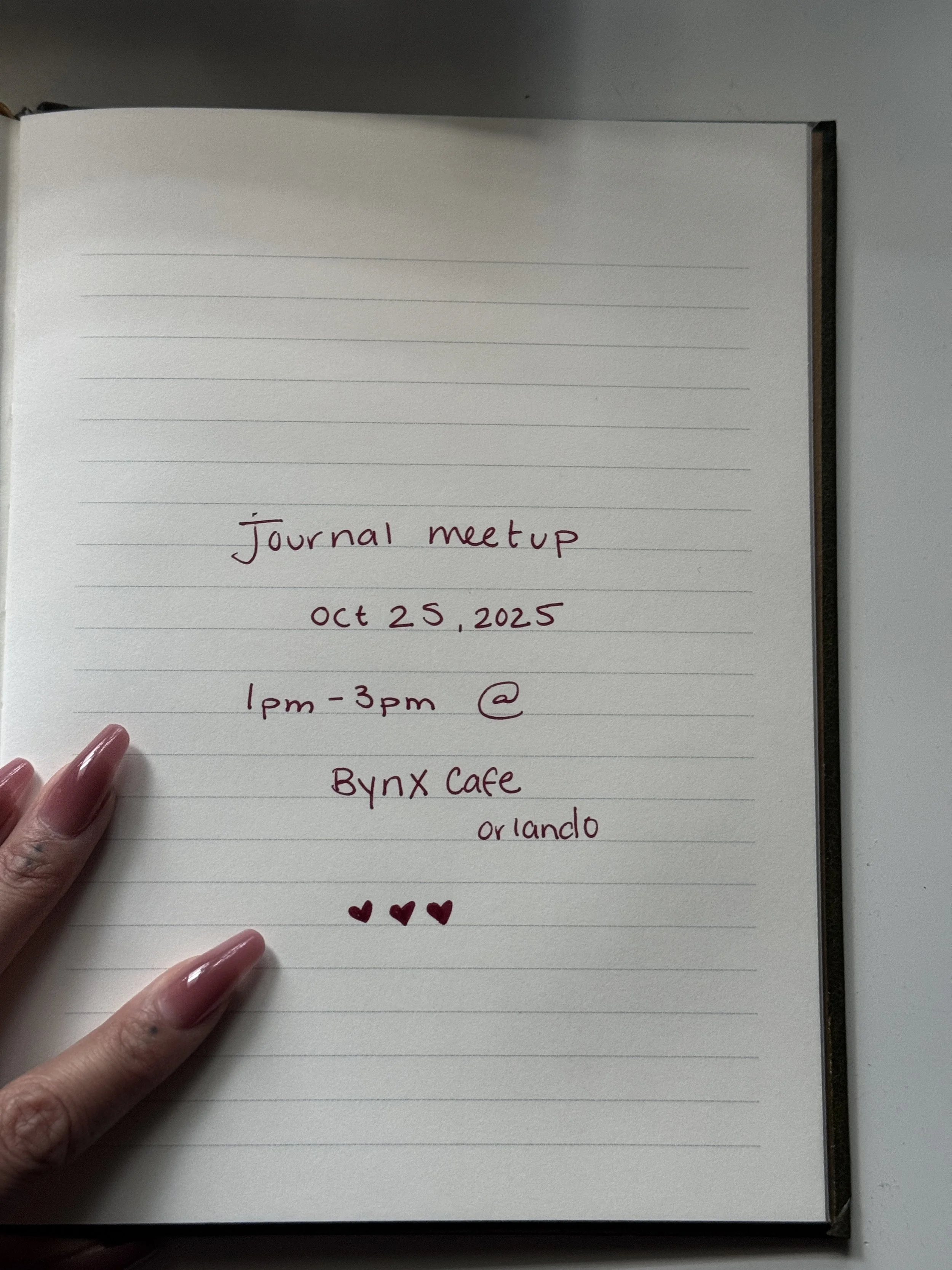Hi Angels ! I’m super excited for my first journal coffee shop meet up <3 Bring your favorite journals, junk journals , sketch books, whatever you’d like ! Come yap , grab a coffee or matcha and lets journal together! ps: its free